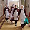 На утро, подобно женам мироносицам, понесли сестры радостную весть о Господе воскресшем тем, кто нуждается в чуде больше всего - к болящим и скорбящим. Получив благословение духовника сестричества иерея Бориса Левитана, вооружившись корзинками с освященными угощениями для персонала и пациентов, исполняя свое непосредственное служение, сестры направились во вторую городскую больницу скорой помощи.